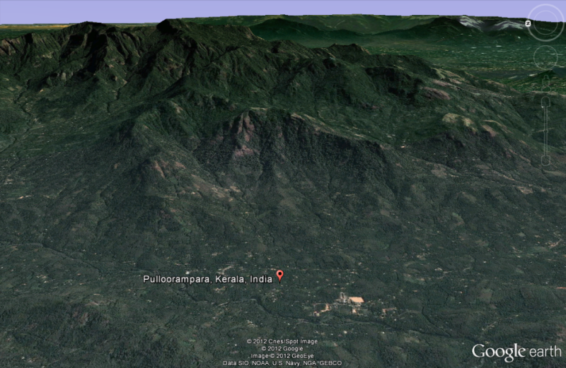 | വയനാടന് മലനിരകളുടെ ഗൂഗിള് എര്ത്ത് ചിത്രം |